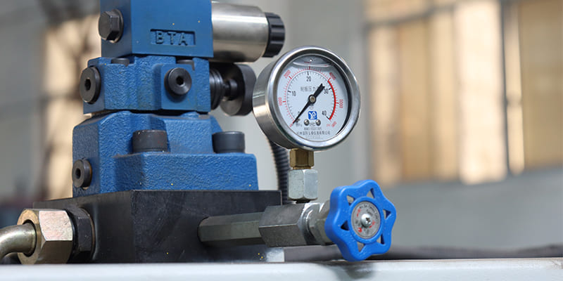 Trajni merilnik hidravličnega tlaka na stroju za striženje nihajnega žarka je ključna sestavina, ki se uporablja za spremljanje delovnega tlaka hidravličnega sistema v realnem času. Običajno je nameščen v glavnem vezju hidravličnega sistema. Ta merilnik natančno odraža spremembe hidravlične obremenitve med postopkom striženja, ki operaterjem pomaga pri ocenjevanju obratovalnega stanja stroja in zagotavljanju stabilnosti in varnosti rezalnih operacij. V primeru nenormalnega pritiska sistema so odčitki merilnikov ključnega pomena za diagnozo napak, kar zahteva pravočasno vzdrževanje ali prilagoditev. Kakovostni merilniki vzdržljivosti vzdržljivosti so običajno zasnovani s odpornimi na udarce in neprepustne lastnosti, ki ponujajo jasne odčitke in močno odpornost na udarce, zaradi česar so idealni za natančno spremljanje v dolgoročnih, visokofrekvenčnih strižnih pogojih.
